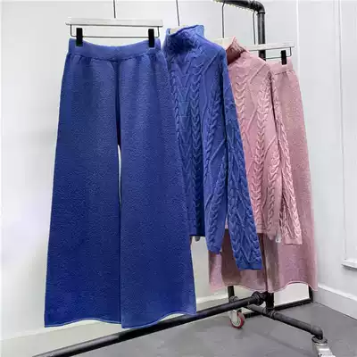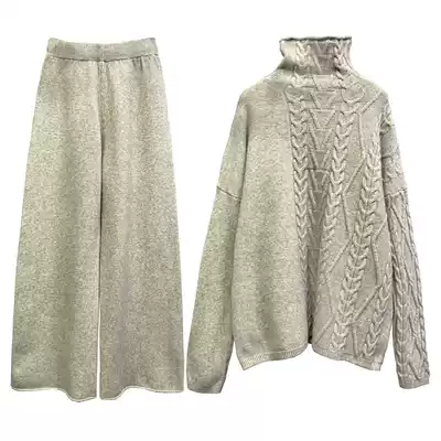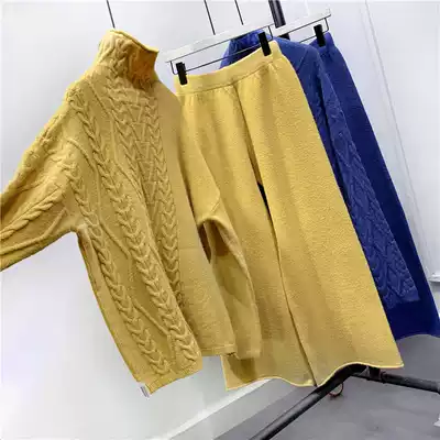 Close your eyes into the super beautiful high-end atmospheric field hemp pattern turtleneck sweater knitted wide leg pants two-piece set women