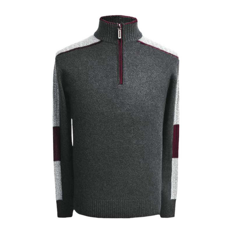 Autumn and winter men's double-strand thickened cashmere sweater half-zipper half-high collar large size loose pure cashmere sweater winter wool sweater