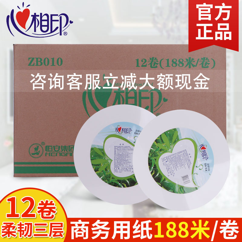 Heart printing large roll of paper ZB010 3 layer 188 m 12 roll of toilet paper toilet paper towel roll tissue tissue whole box