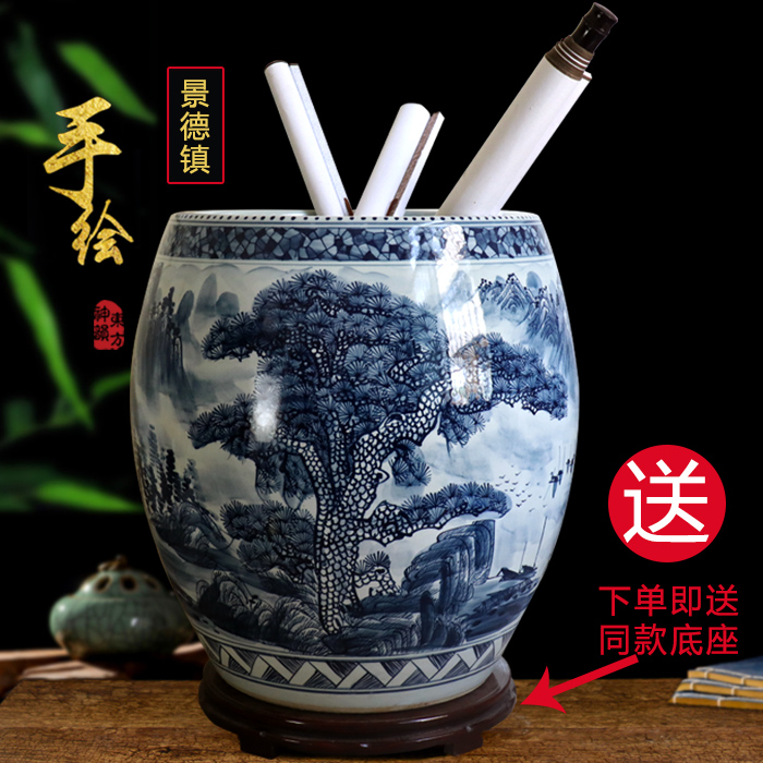 Jingdezhen Ceramic calligraphy and painting cylinder hand painted green flower porcelain imitation ancient porcelain painting cylinder scroll cylinder New Chinese creative storage