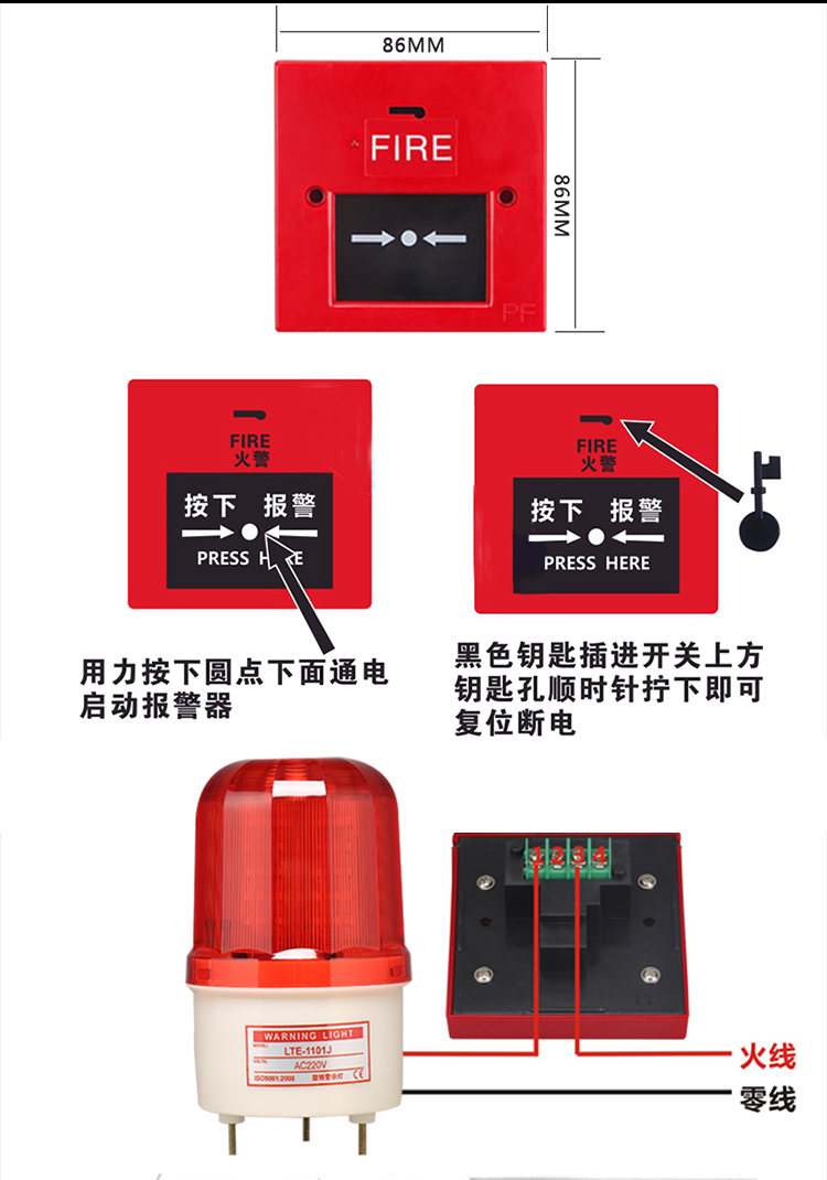 Factory Inspection Alarm Industrial Rotary Fire Alarm Light Fire Sound and Light Alarm Light Warning Light Fire Alarm Bell