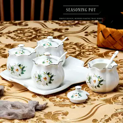 Single household seasoning box oil vinegar jar European bone china seasoning tank Oil pot combination set chili jar free combination