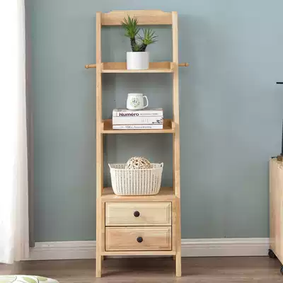 Nordic solid wood bookcase home bedside bookshelf shelf floor modern simple living room flower shelf storage cabinet