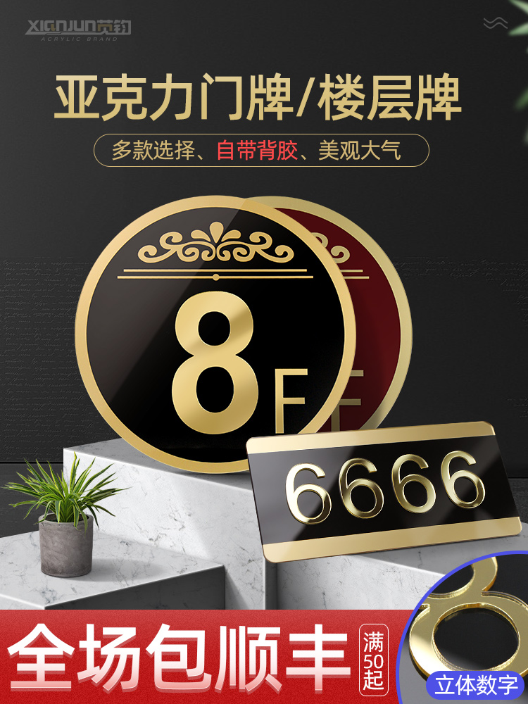 Acrylic house plate custom number plate home hotel room floor sign listed hotel high-end creative digital self-adhesive house number sticker house number custom room number sticker
