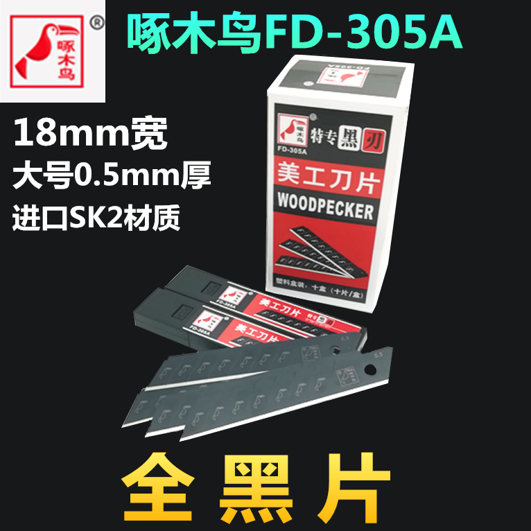Woodpecker blade FD-305A 306A full black sheet 18mm large number of beautiful work knife sheet 0 5mm 0 5mm 6mm