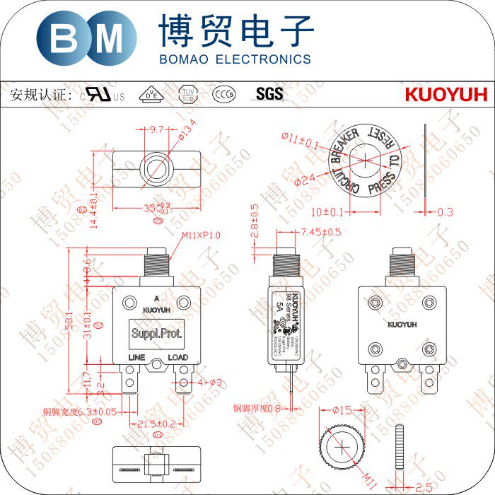Taiwan KUOYUH overcurrent protector 98 series 5A overload switch fuse equipment circuit breaker