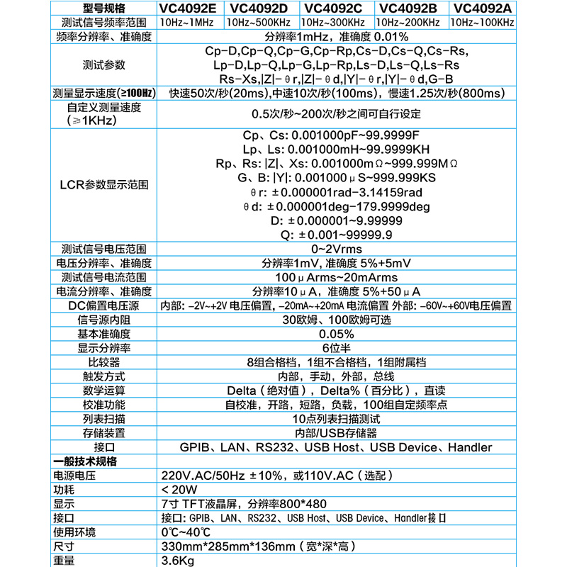 VC4080 handheld (100KHz6 frequency points) VC4082 handheld (10Hz ~ 100kHz continuously adjustable) VC4090A(10