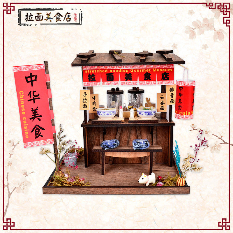 New DIY hut Chinese retro loft hut model DIY handmade material package street view theater creative gift