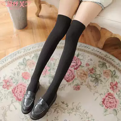Spring fake two pieces of upper meat and lower black stitching stockings female tide spring and autumn day Fake High tube over the knee two color pantyhose