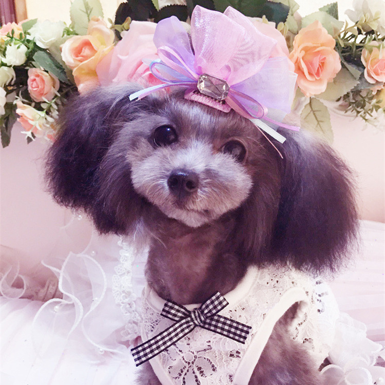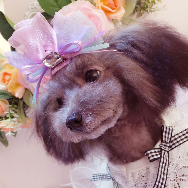 Korean handmade Pet headdress Small fresh mesh plastic diamond hairpin for the little princess to wear