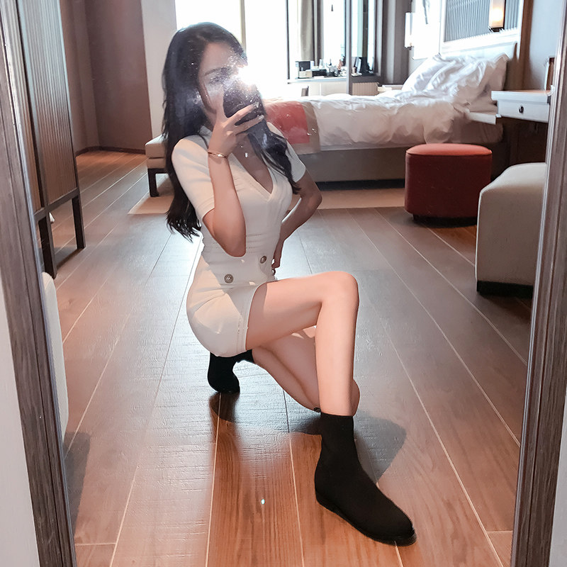 Socks Boots Women's Flat Short Boots Spring and Autumn Single Boots Knitted Socks Lois Skinny Boots Stretchy Boots