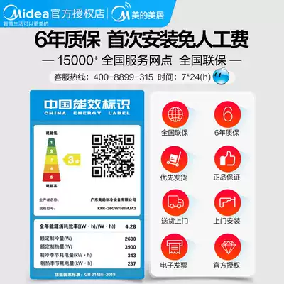 Midea air-conditioning, cooling and heating, new three-level energy-saving frequency conversion home bedroom hanging large 1p horse wall-mounted air-conditioning smart arc