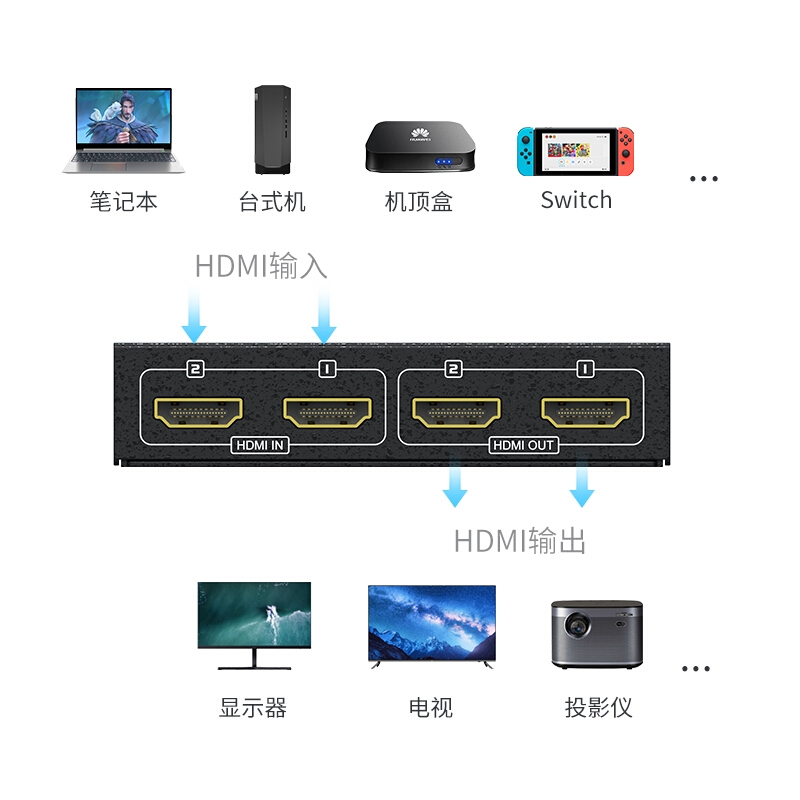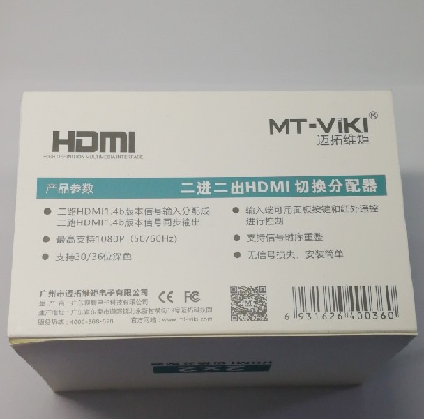 Maxtor MT-HD2-2 2 in 2 out HDMI switcher distributor with remote control support automatic infrared switching 3D