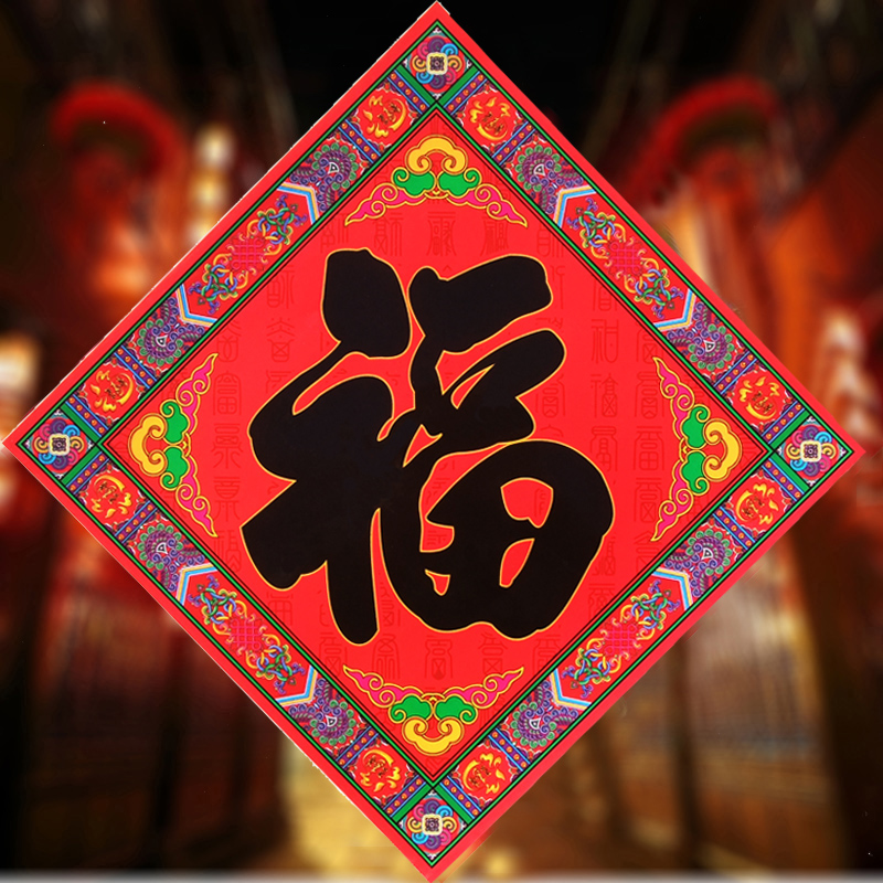 2021 Spring Festival bull year fu character door post-year painting Colour photocopy paper Yang Liuqing fu character paste square gate glass Chinese New Year decorations