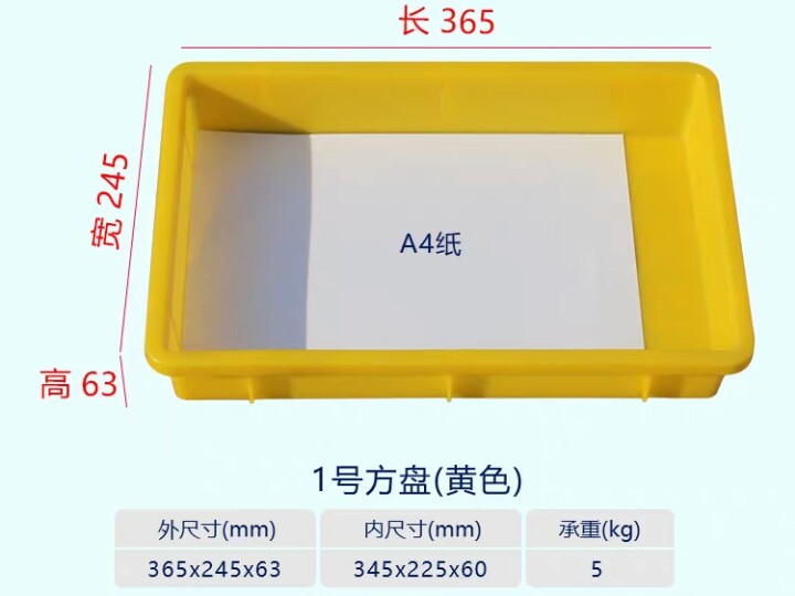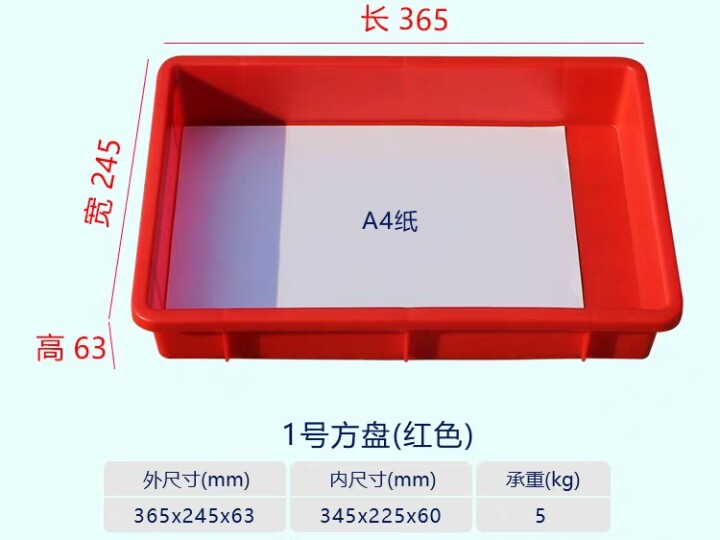 No. 1 square plate parts box tray rectangular plastic box shallow plate thickened turnover box plastic plate 365*245*65mm