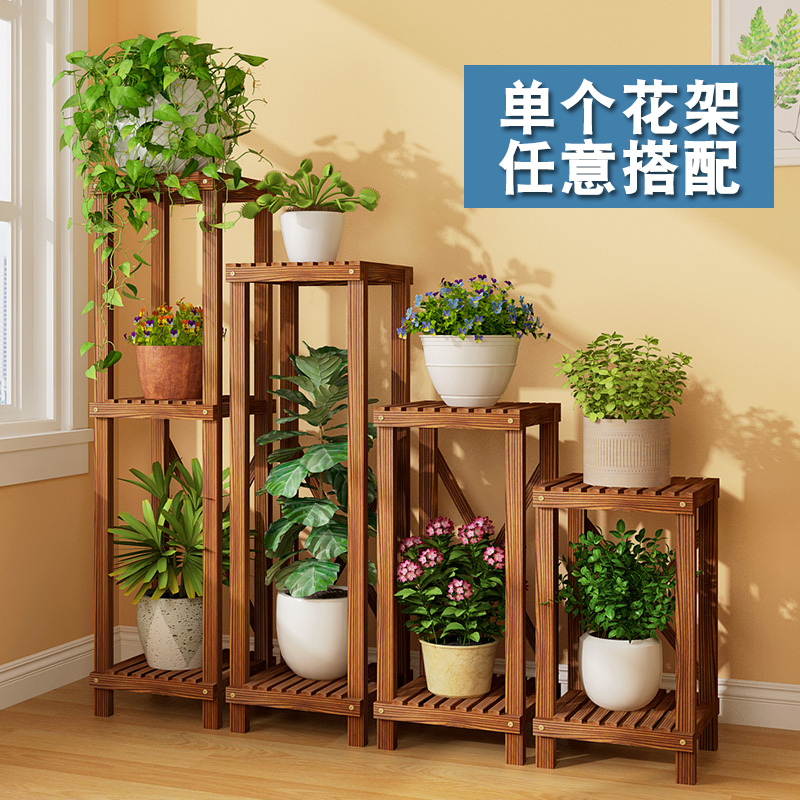 Wooden flower rack shelf high household living room Single multi-function flower table shelf Multi-layer indoor simple and modern
