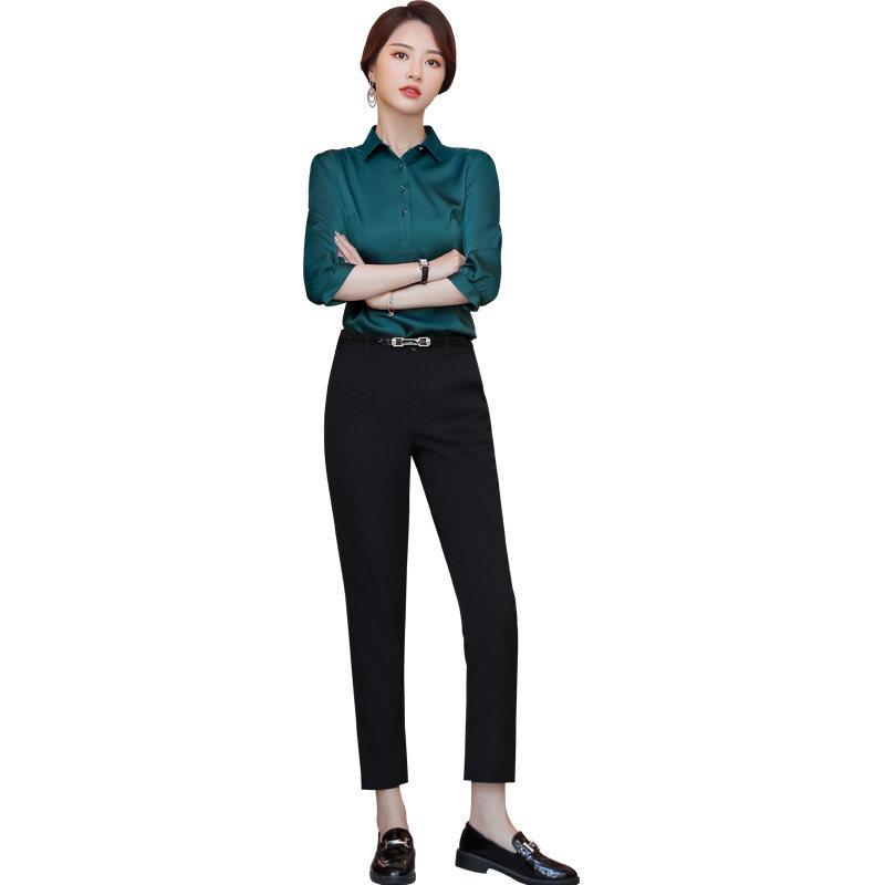 Green Snow-spinning Jersey Woman Foreign Pie 70% Sleeves 2022 Spring Summer New Temperament Slim Fit White Shirt Blouse