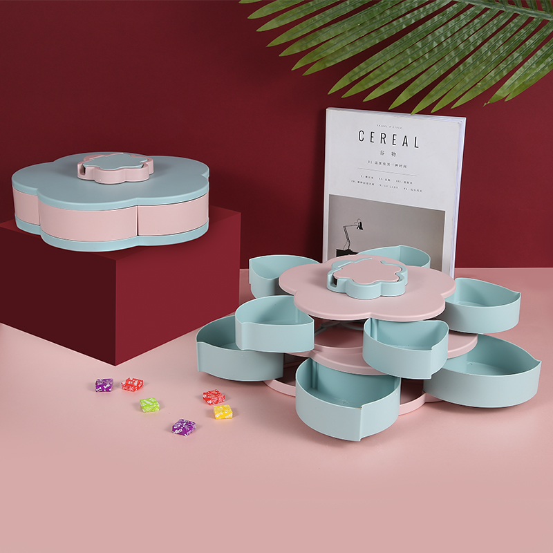 Double Layer Petal of Petal Rotation Candy Box Containing Fruit Pan Home Creative Modern Living Room Dry Fruits Pan Candy Tray