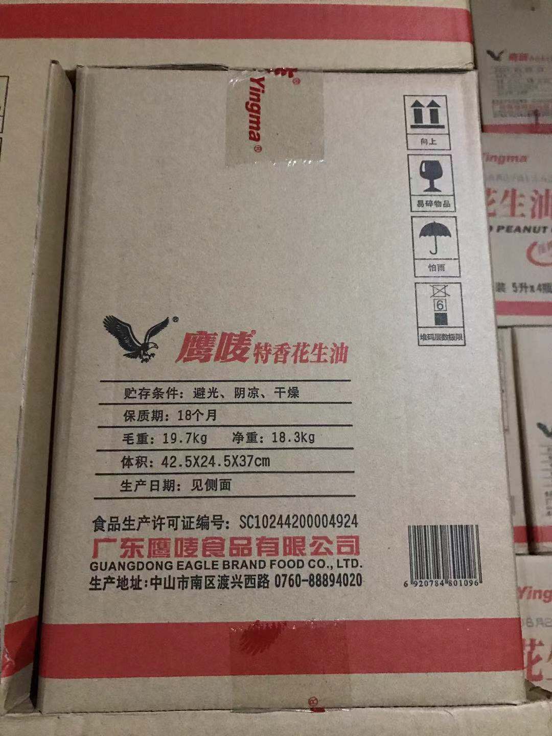 Eagle-mark peanut oil 5L non-genetically modified pressing first-class edible oil 1 bottled Guangdong Province