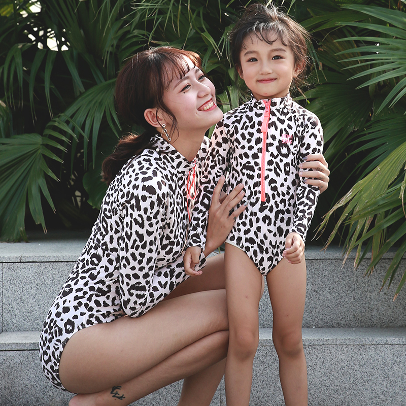 Children's Swimwear Parent-child Mother-Daughter Holiday Girls Baby Girls Girls Swimwear Siamese Long-sleeved Sunscreen BAO WEN Swimwear