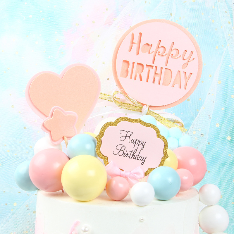 Net Red Ins Wind Cake Decoration Colored Ball Swing Piece Sweet Terrace Plug-in Birthday Cake Decoration Inserts accessories