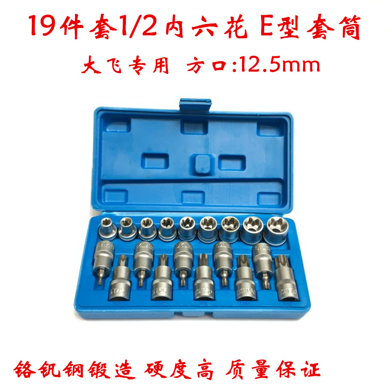 19-piece set of E-type sleeve inner six-flower batch head Delia 1 2 curved fast ratchet wrench