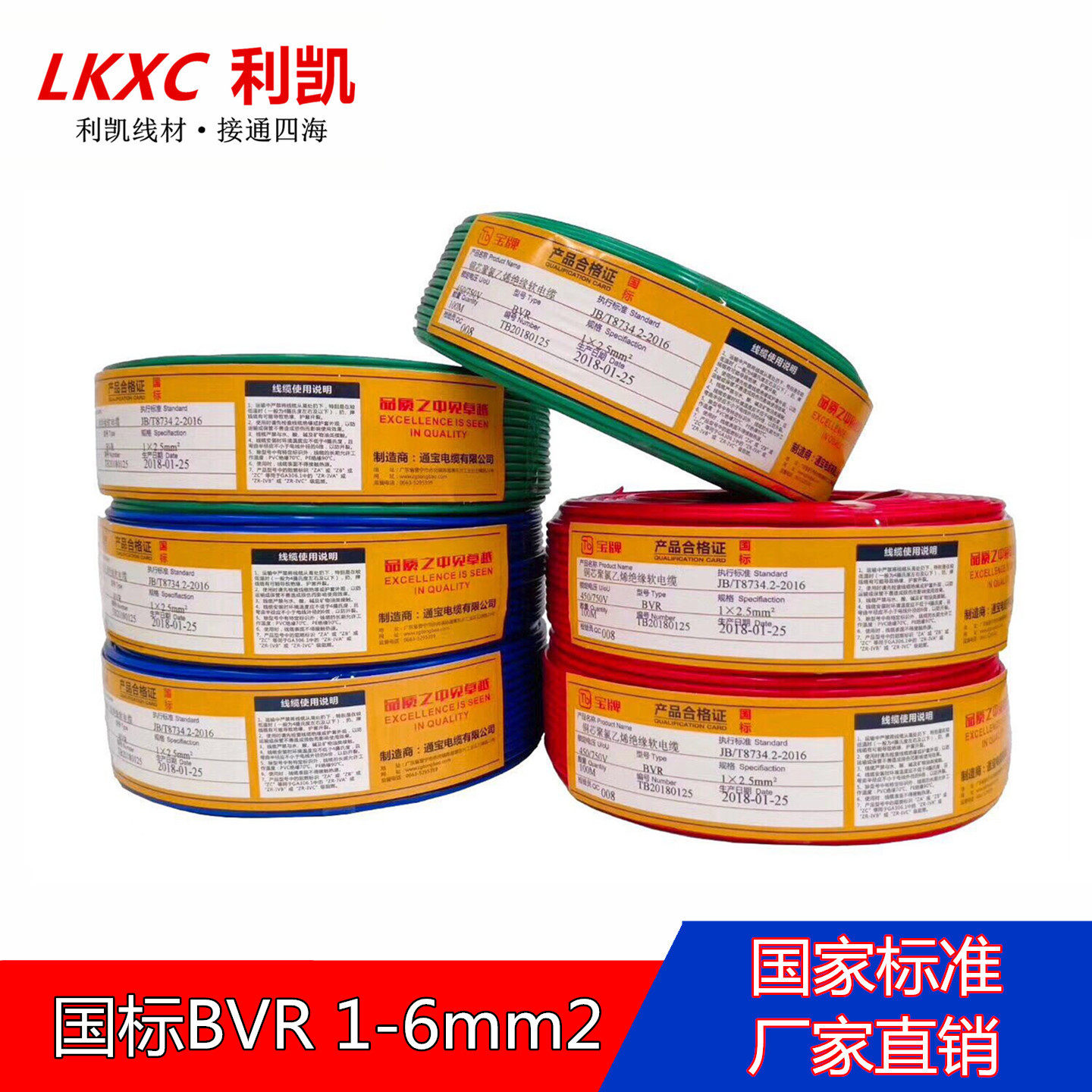 GB copper core soft wire BVR 1 5 2 5 4 6 square home improvement single glue multi-strand pure copper soft wire