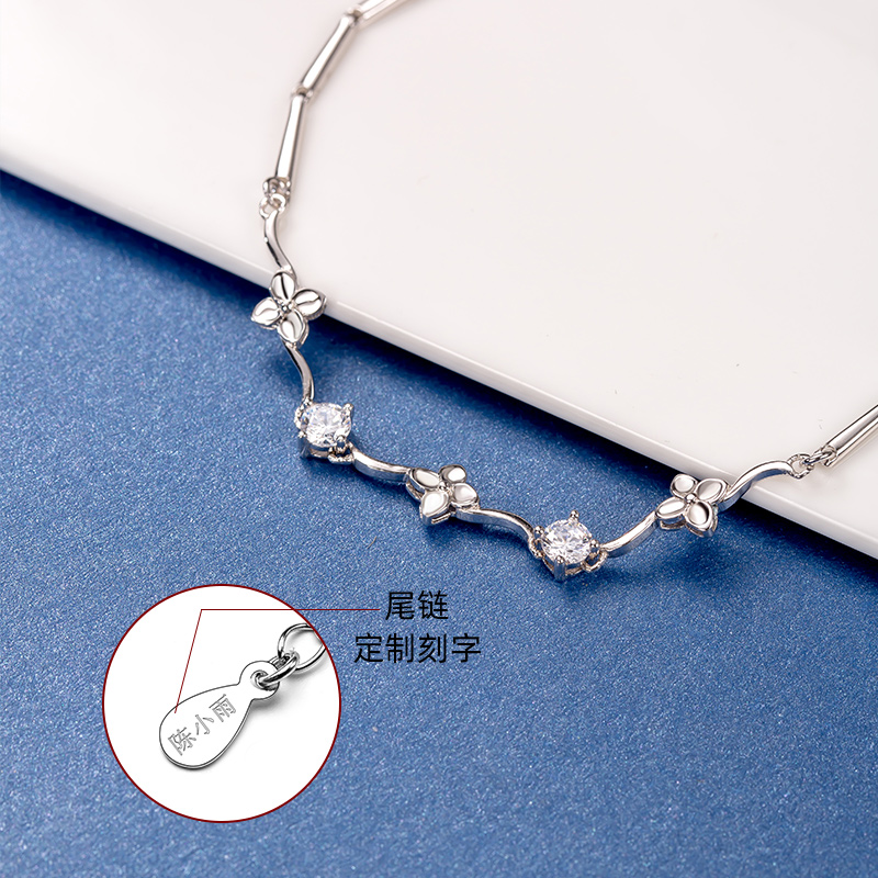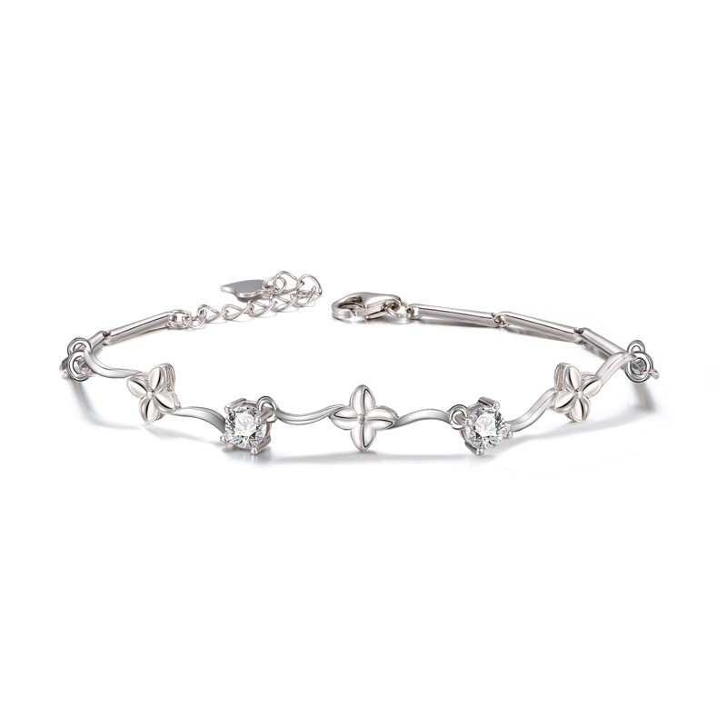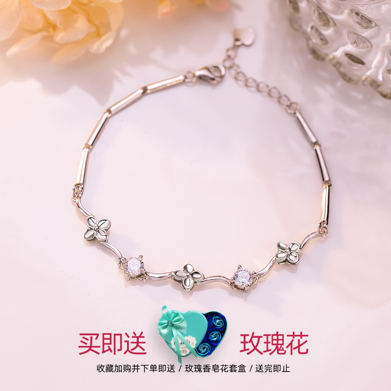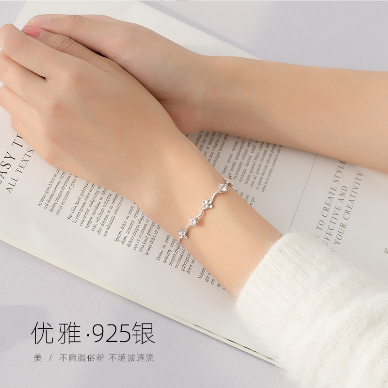 Four-leaf straw handmade female pure silver Korean version of a minimalist personality student bestie silver handmade lovers's small crowdsourced design