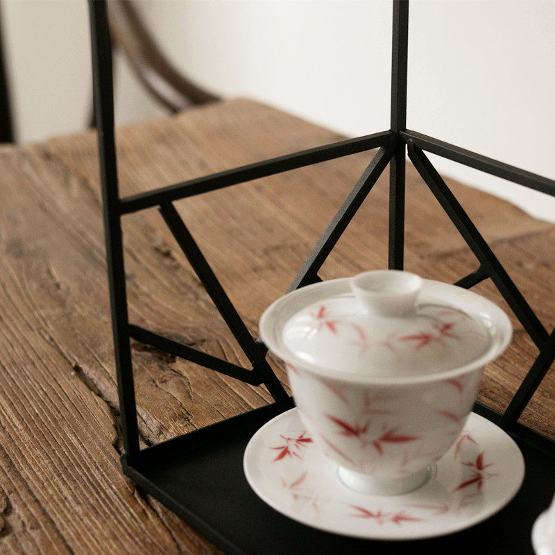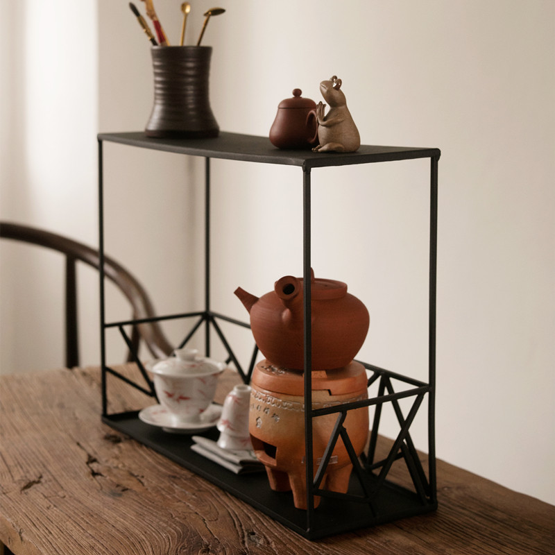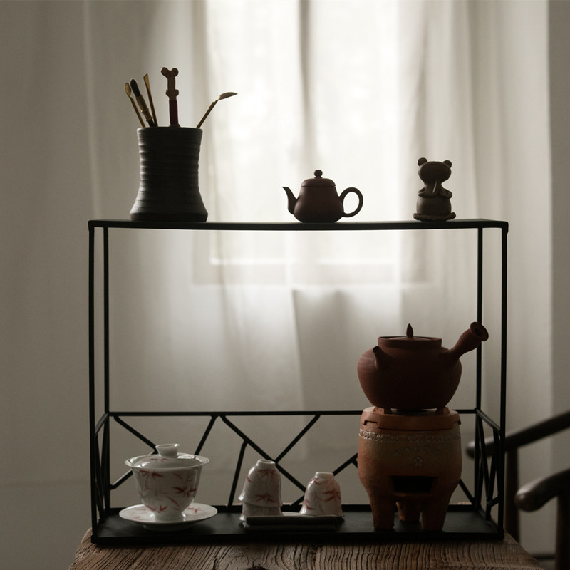 Iron Art Tea Shed with shelves Teacup Shelf Day Style Kung Fu Tea Props Iron Bou Rack Tea Table
