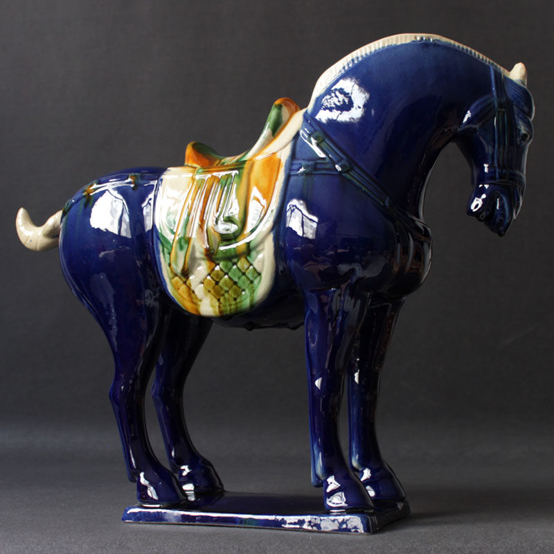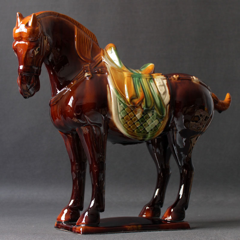 Ceramic Horse Fittings Fengshui Tang Three Colorful Horse Chinese Renaissance Living Room Bogu Shelf Swing Parts Ceramic Craft Gift