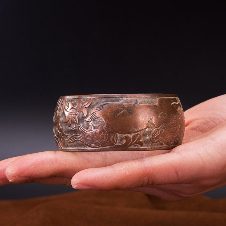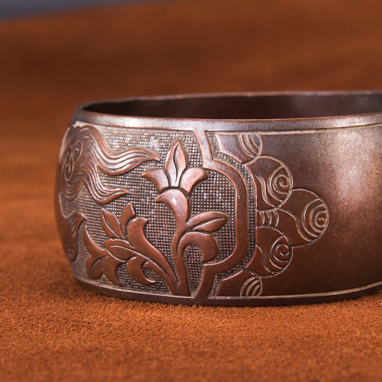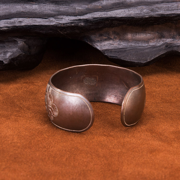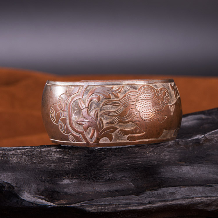 Tibetan East old jewelry Handmade Tibetan snow Lion totem old copper large ring mouth wide face opening bracelet