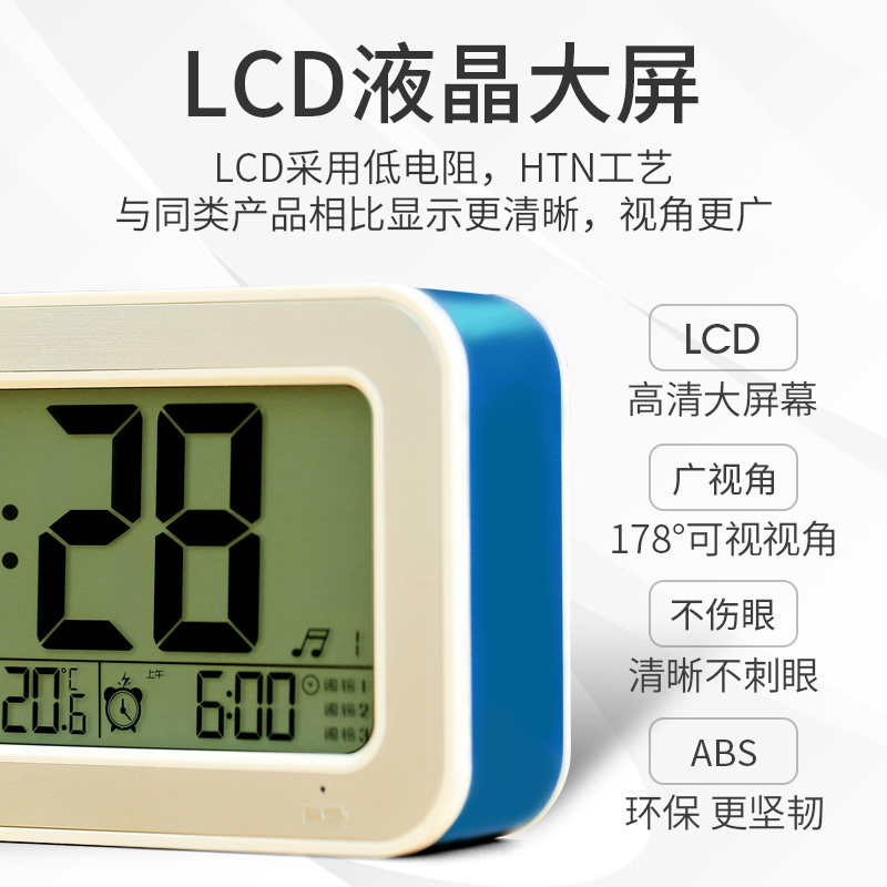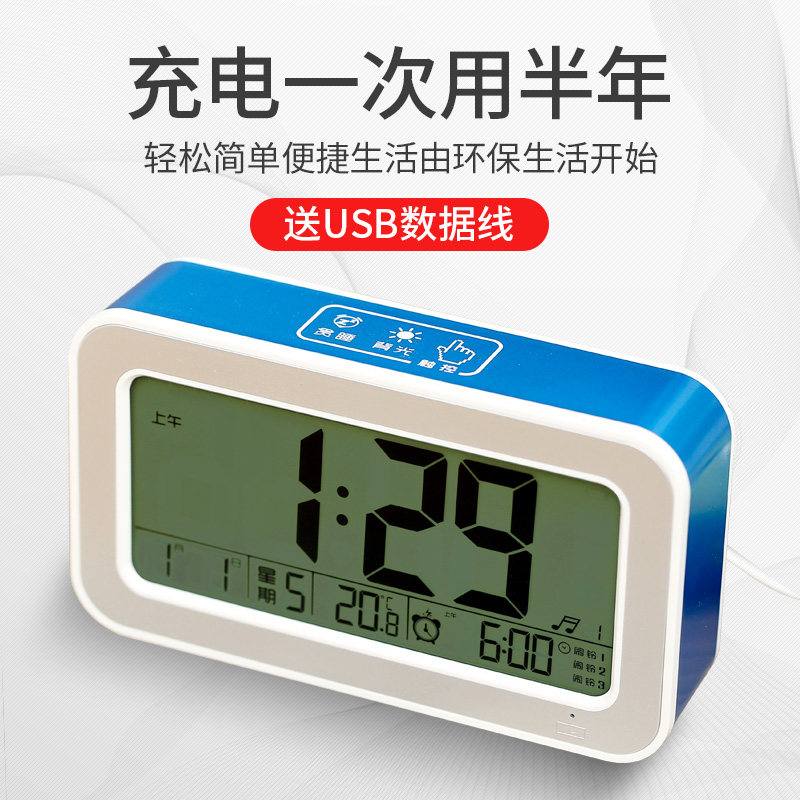 Smart charging alarm clock thermometer multifunction headboard Fashion mute Night Photonics students with big sounds