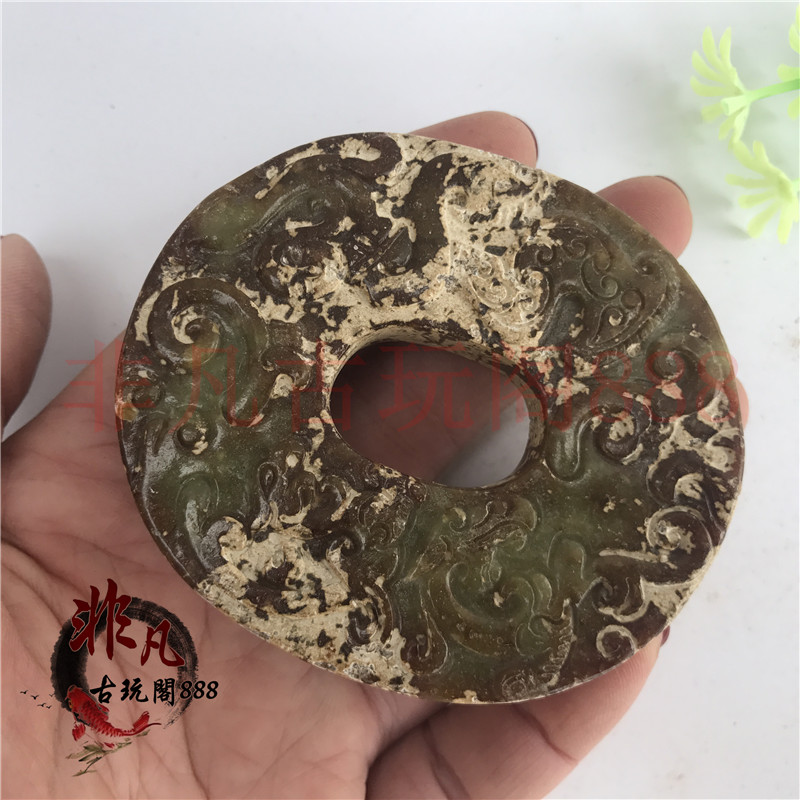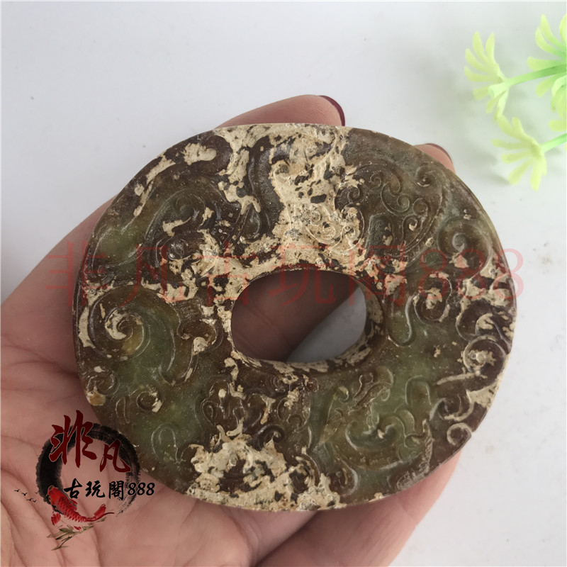 Antique made of old Gao ancient jade release Warring country Old Xiu jade antique jade antique jade bi-piece pendant fine engraving double-sided jade ring old objects