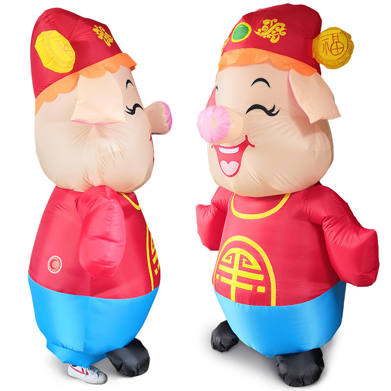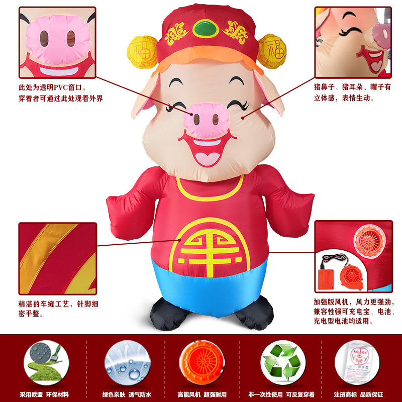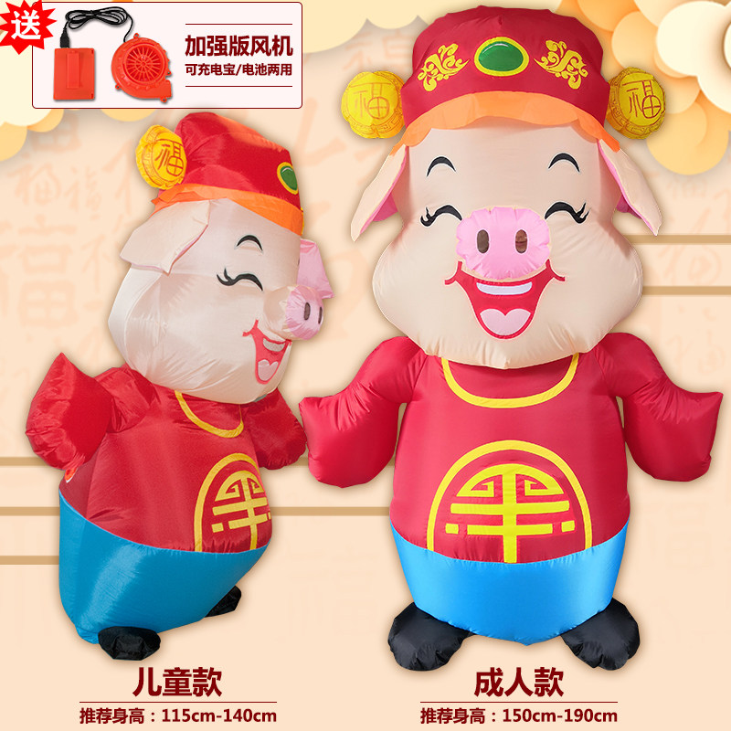Pig year mascot lucky lucky pig inflatable clothes cartoon pig doll costume God of wealth pig adult performance props