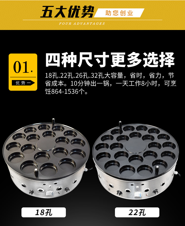 18 holes 22 holes 26 holes 32 Eggs Burger Machine Red Bean Wheel Cake Machine Commercial Electric Egg Meat Burger Stove Egg Burgers