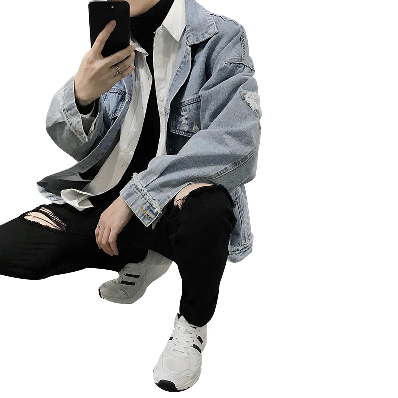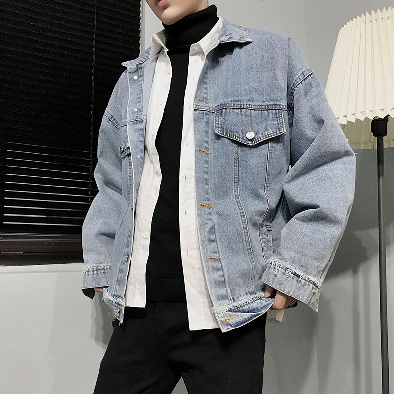 Port wind chic denim jacket men 2021 spring Korean version of the trend net red ins super fire tooling jacket tide brand
