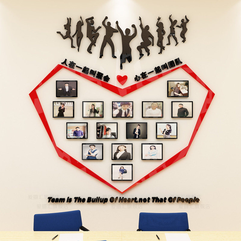 Company's corporate office staff team feng-ho photo culture wall decoration 3d three-dimensional inspirational wall posted slogans