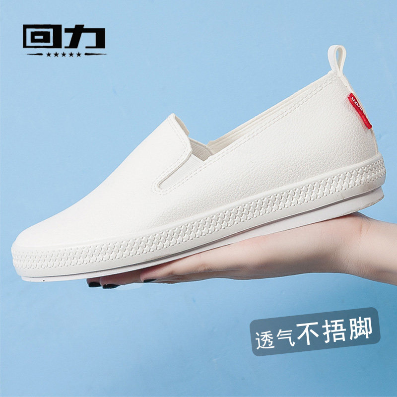 Back Force Women Shoes Low Help Women One Foot foot Lazy Shoes Flat Bottom Nurse Shoes Han Edition Soft Bottom PU Face Small White Shoes Working Shoes