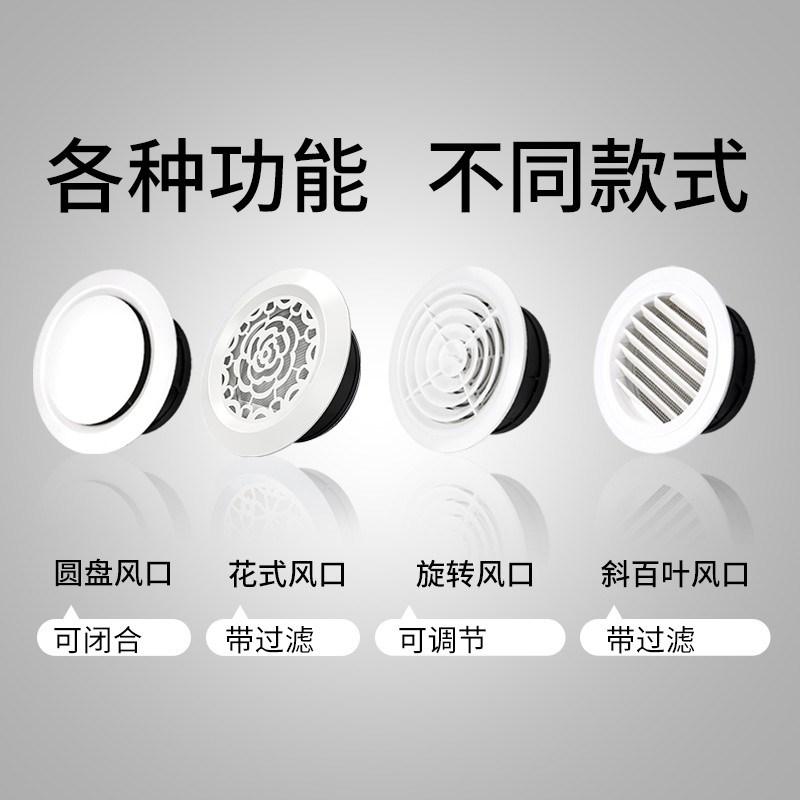 Fresh air outlet circular ABS adjustable louver air outlet with filter indoor pipe inlet and outlet air-conditioning vent