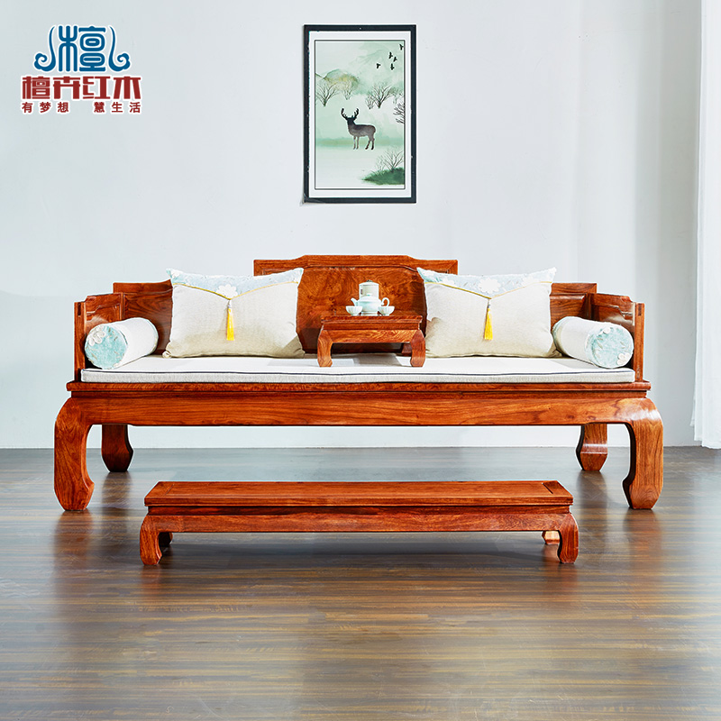 Mahogany lohan bed solid wood sofa bed new Chinese kang bed rosewood antique furniture hedgehog rosewood lohan sofa