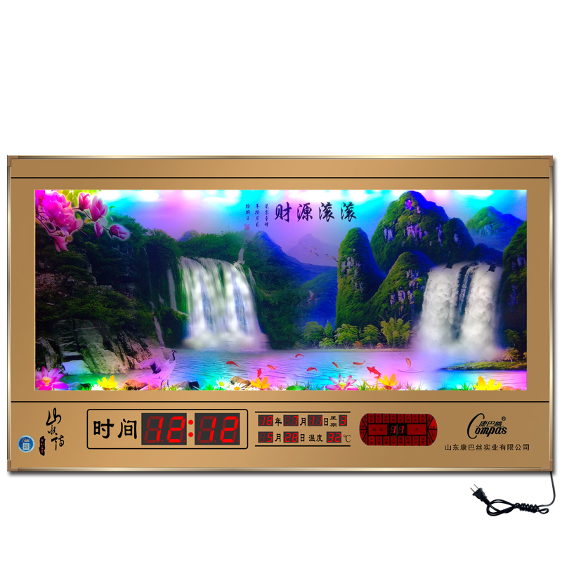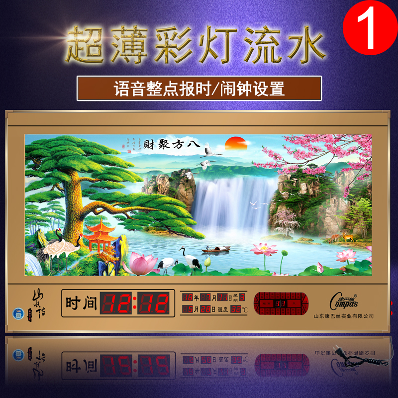 Compass perpetual calendar 2021 new hanging clock living room electronic digital home ultra-thin dynamic running water luminous