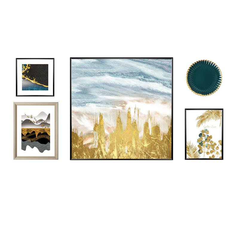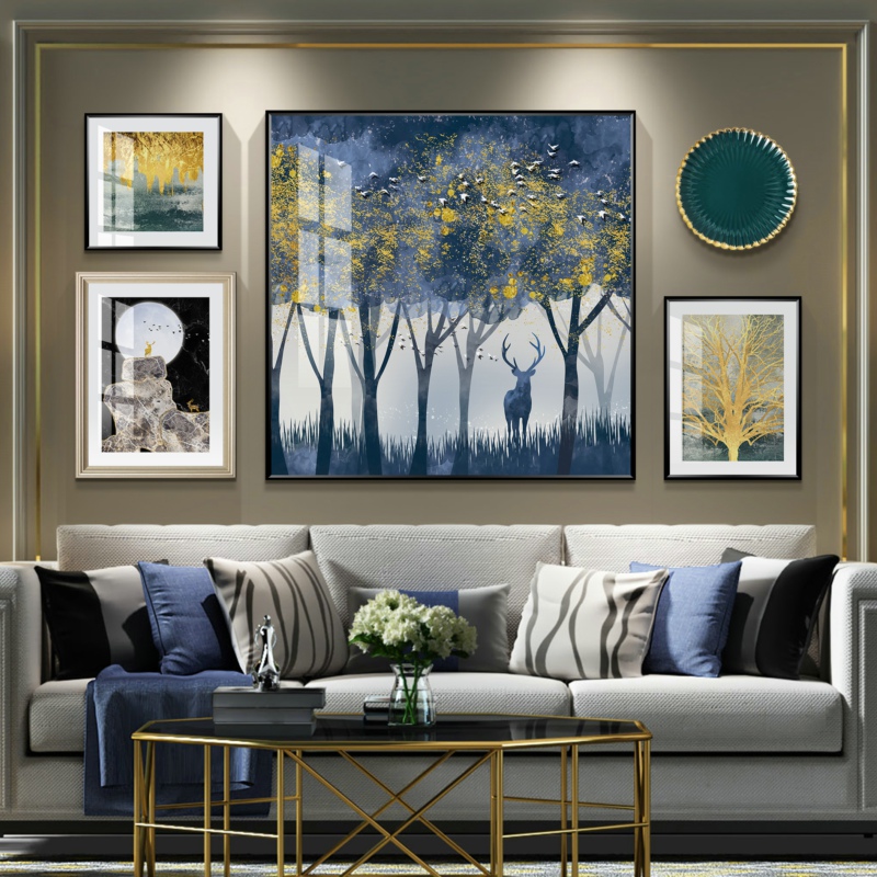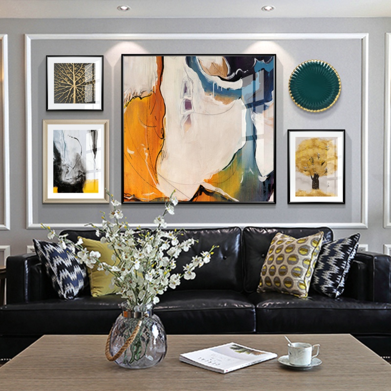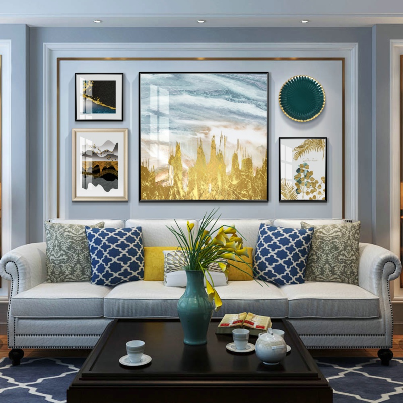 American living room decorated sofa background wall line hanging painting modern simple light luxury frescoes combination wall painting software