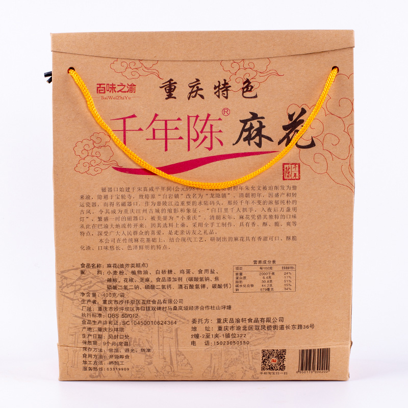 Chongqing specialty snacks Millennium Chen brand twist Magikou Ancient town handmade twist 400g crispy twist gift box