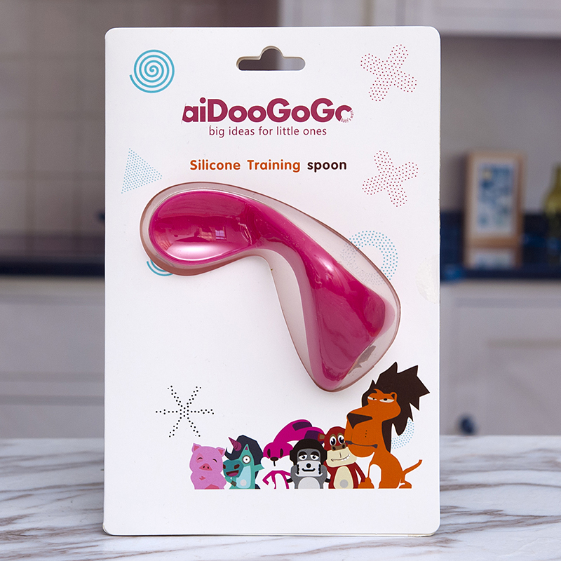 American aiDooGoGo baby crooked spoon silicone elbow baby learning to eat training tableware 0-1-2-3 years old