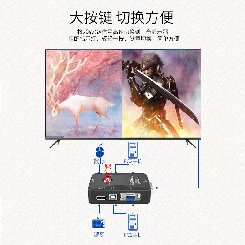 Maitou dimension MT201UKCH 2 KVM switcher VGA computer printer two in one out sharing switch