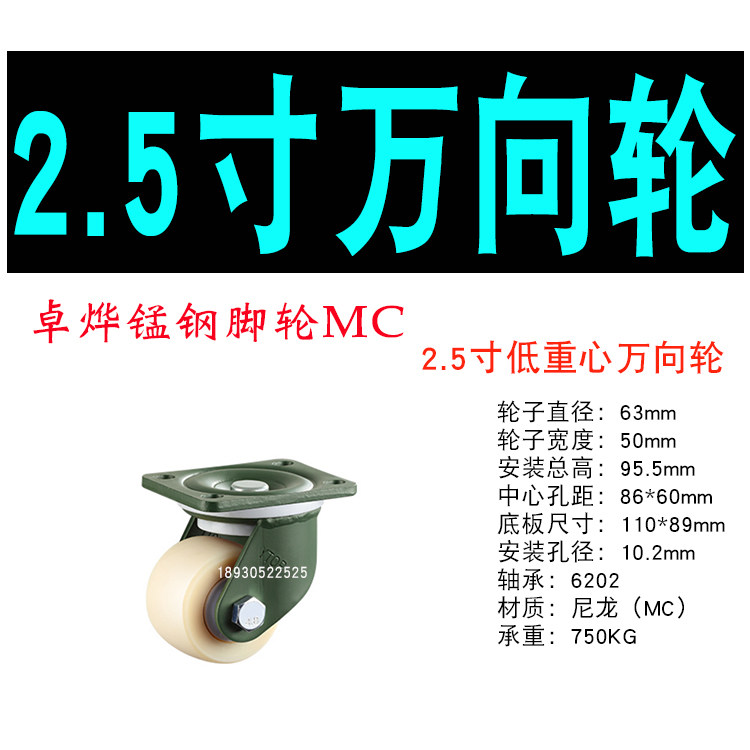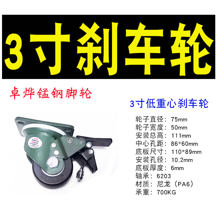Load bearing 1 ton Chapo manganese steel 2-inch 3-inch abrasion-proof nylon low centre of gravity universal wheel with brake heavy duty equipment castors