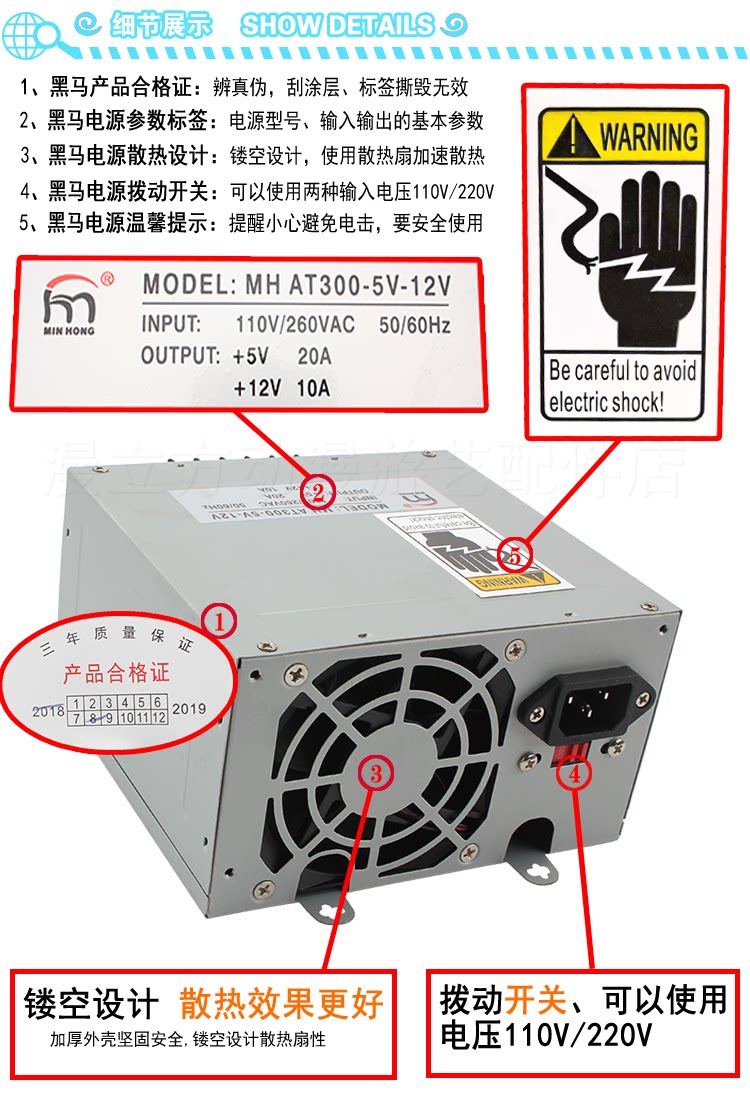 Minhong MH-AT300-5V-12V power box 5V20A out of 12V10A large dark horse industrial entertainment machine equipment
