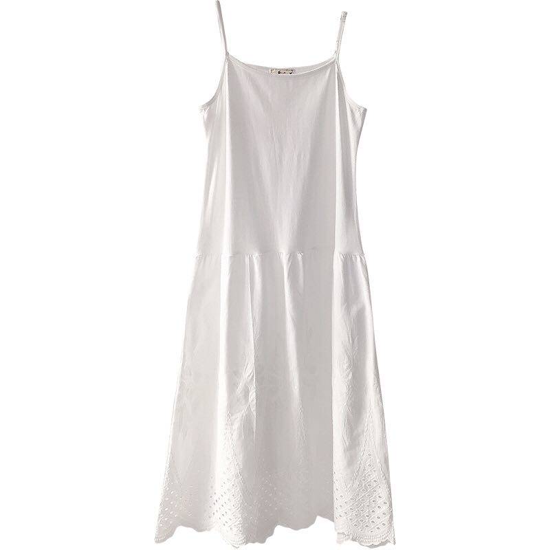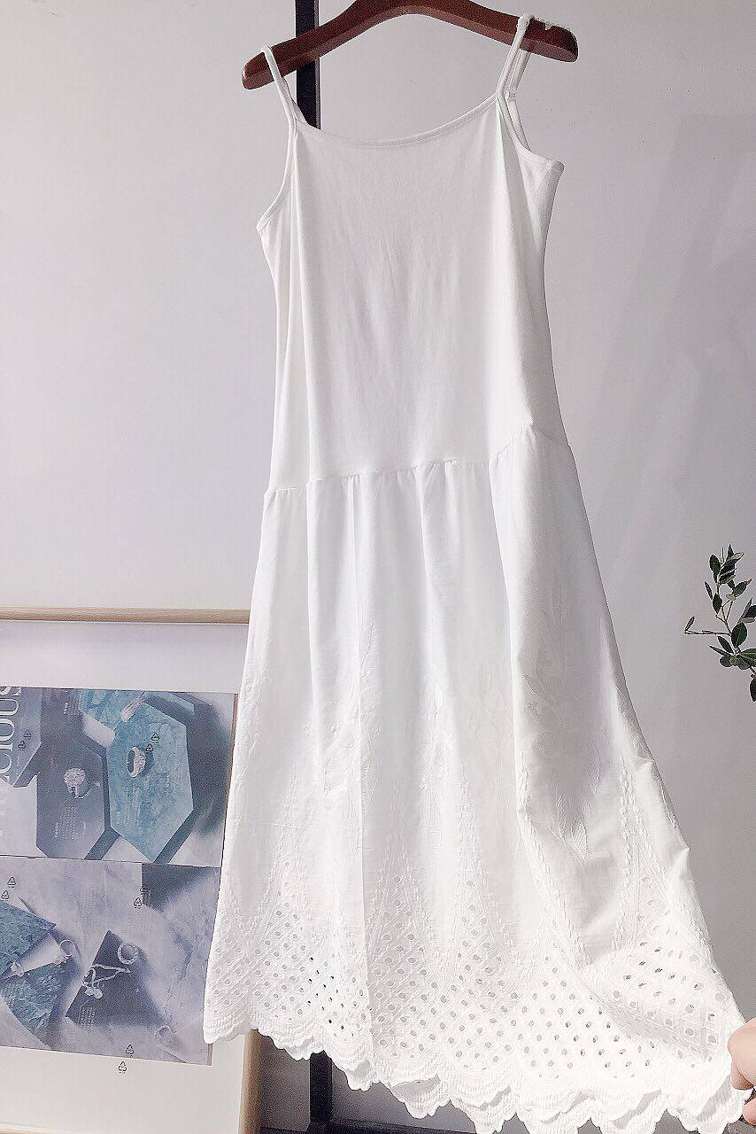 Art Fan Reguson Department Loose Pure Cotton White Embroidered Lace with long harness foreign dress Bottom Lining Skirt Woman