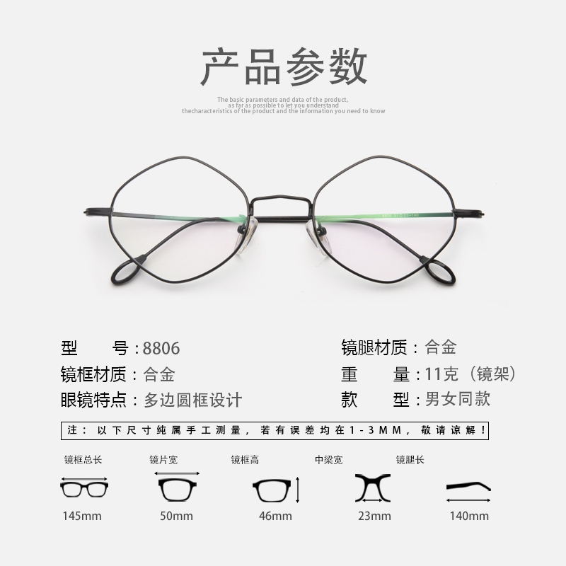 Myopia glasses frame men's and women's retro glasses frame Korean version of literature and art anti-radiation flat mirror net red polygonal trend