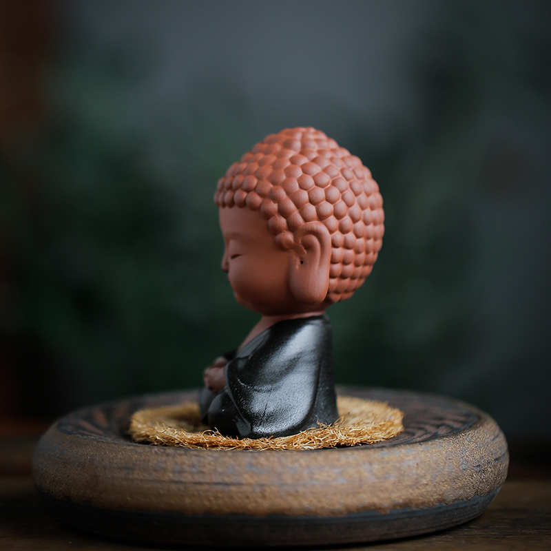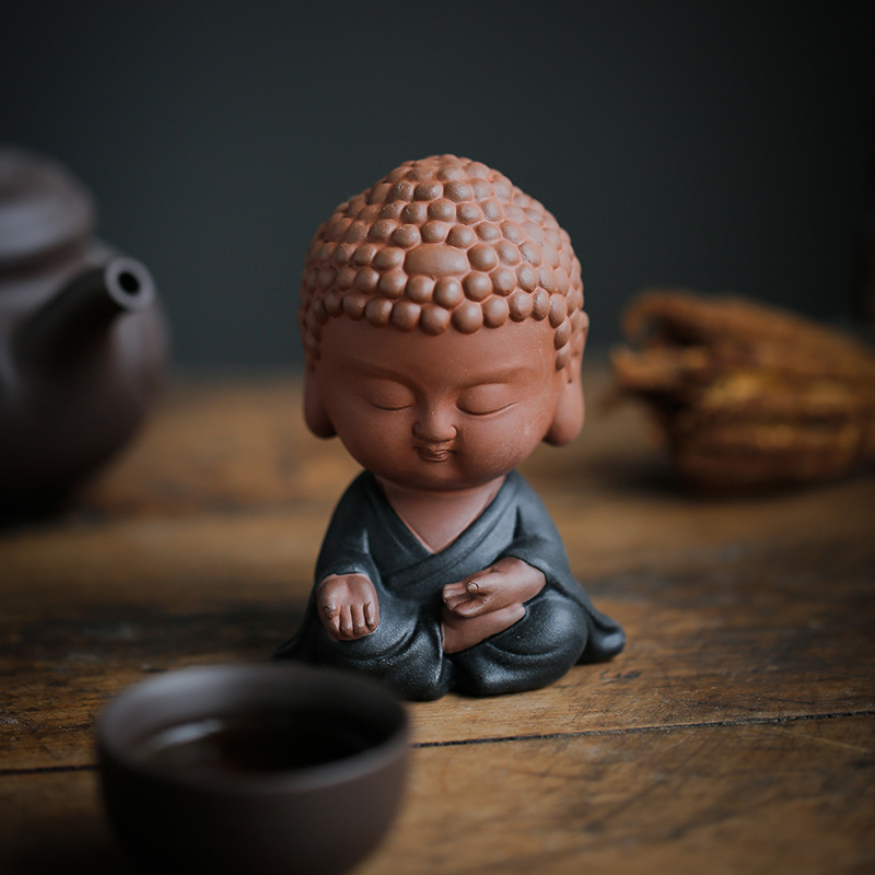 Purple sand can raise tea pet ornaments Tea ceremony Colorful sand pottery Small monk creative cute Tathagata Buddha Tea play ornaments